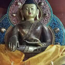 Der Ort ist ziemlich groß. Nach einem Kaffee stromerten Ilka und ich noch etwas herum. Auf dem Berg sah man ein Kloster, aber dafür benötigen wir ein Ticket 🤔 Also liefen wir an der Seite durch den Wald, den Yakpfaden folgend, und kamen ganz zufällig auf Höhe des Klosters raus 😇 Der Haupteil war eh geschlossen, aber wir fanden noch eine sehr schöne Buddha - Statue...