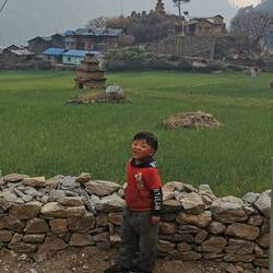 Ein kleiner Junge (vielleicht 3-4 Jahre) zeigte uns noch die nahegelegene Gompa. Er kannte den Weg scheinbar im Schlaf und flitzte vor uns her. Er war ganz stolz, daß er wußte, wo es lang geht - einfach süss.
