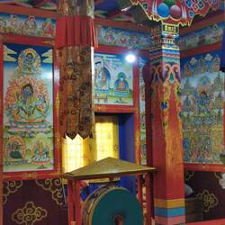 Wir trinken erstmal einen Kaffee und Ilka und ich stromern noch zu einer Gompa auf dem Berg, die man vom Dorf aus sehen konnte. Sie scheint neu gebaut zu sein, die Malereien sind noch nicht ganz fertig. Sieht aber toll aus 😃