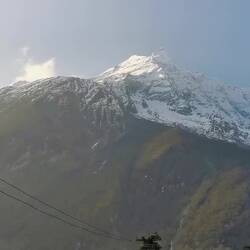 Heute früh war blitzeblauer Himmel und klare Sicht und wir konnten den Manaslu in seiner vollen Schönheit bewundern.