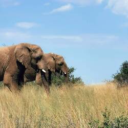 Dann sahen wir etwas entfernt 3 Elefanten. Wir folgten ihnen zu Fuss und kamen ziemlich nah ran. Es sind die einzigen im Park, 3 Bullen namens Apollo, Ace und Astro.