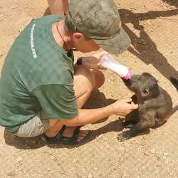 Als wir unser Werkzeug wieder verstaut hatten, fragte uns Thomas, ob wir die Babyaffen füttern wollen - was für eine Frage 😂