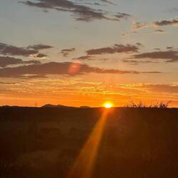 Jeden Donnerstag ist Pizzanight. Das Camp Namibia besitzt einen Pizzaofen und wir bestellten mittags schon unsere Wunschpizza. Um 19h war angerichtet und wir assen sie mit einem grandiosen Ausblick auf das breite (trockene) Flussbett des Omaruru-Rivers und Kudus auf der anderen Seite. Der Sonnenuntergang war das I-Tüpfelchen ☀️