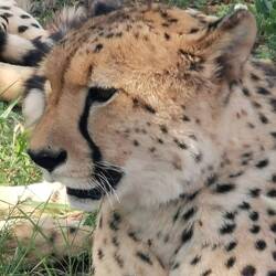 Die traurigste Geschichte hat Lucky, der Cheetah . Er hat nur noch 3 Beine. Als etwa 6 Monate altes Jungtier verlor er sein linkes Hinterbein in einer Falle. Er musste operiert werden. Mittlerweile ist er 7 Jahre alt und wir konnten sogar in sein Gehege reingehen, als er frass. In der Wildnis könnte er nicht überleben...