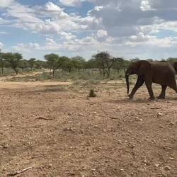 Auf dem Rückweg schauten wir noch kurz nach Piet, einem allein umherziehenden Elefantenbullen. Lustigerweise fanden wir ihn bei einer grösseren Herde Elefantendamen mit 3 Jungen. Mit ausgefahrenem Penis stolzierte er zwischen ihnen herum, fand aber nicht viel Anklang 😂 Die Matriarchin komplementierte ihn dann aus der Gruppe wieder hinaus...