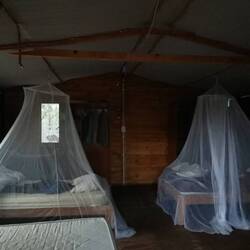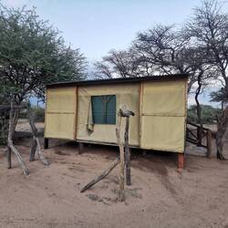 Pünktlich zum Mittagessen trafen wir in Naankuse ein. Zu meinem Erstaunen war ich diesmal nicht in der Villa untergebracht, sondern im Bushcamp, was 15min in der entgegengesetzten Richtung liegt. Hier habe ich nun ein Zelt mit 3 Betten für mich allein mit einem Bad unter freiem Himmel - sehr spannend 😃