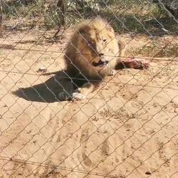 Wir fütterten auch 2 Löwenbrüder, die mal zu dritt waren. Ihr Bruder Bratt (Pitt) starb, als nach einem Sleep over mit Volonteers einer seinen Schlafsack im Gehege vergessen hatte und Brad den gefressen hat... Da waren sie aber noch ganz klein... Die Scheinangriffe der großen Löwen sind schon beeindruckend - da will sicher keiner mehr im Gehege schlafen. 😂