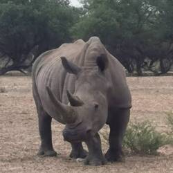 Als am Dienstag die Aktivitäten vorgestellt wurden, hatte ich mich gleich für das Rhino Tracking mit den Buschleuten gemeldet. Eigentlich findet es erst nächste Woche wieder statt, aber sie haben es extra für mich für heute organisiert. Ich traf mich um 7.30h mit den San (Alan und Jacobs), um die Nashörner zu finden. Wir starteten am Wasserloch an unserem Camp und schauten erstmal nach frischen Spuren. Sie kannten etwa den Bereich, in dem sie sich bewegen, und wir folgten eine ganze Weile einer Straße. Nach etwa 1h die ersten frischen Spuren. Nun ging es querfeldein weiter, immer den Tracks folgend. Nach einer weiteren Stunde waren wir ganz nah dran: frischer Pee und Poo 😅. Nun bewegten wir uns langsam ohne zu sprechen und dann standen sie vor uns: 4 riesige Breitmaulnashörner (2 Bullen und 2 Weibchen) und sie schauten in unsere Richtung. Wir waren etwa 30m entfernt. Wir blieben sofort wie angewurzelt stehen und bewegten uns nicht mehr. Sie entschieden sich zum Glück fürs Weglaufen. Und das erstaunlich schnell 😳. (Wegrennen wäre chancenlos)