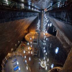 Heute waren wir im Salzbergwerk Turda, es ist ein früher benutztes Salzbergwerk. Heut zu tage ist es allerdings eine art Freizeitpark mit Tischtennis, Riesenrad, Paddeln und viel mehr FreizeitLæs mere