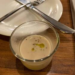 Very think and wet pizza. Crust is soft but can taste the char from the wood fire