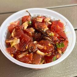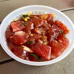 Hawaiian ahi that has red salt, chili flakes, seaweed
