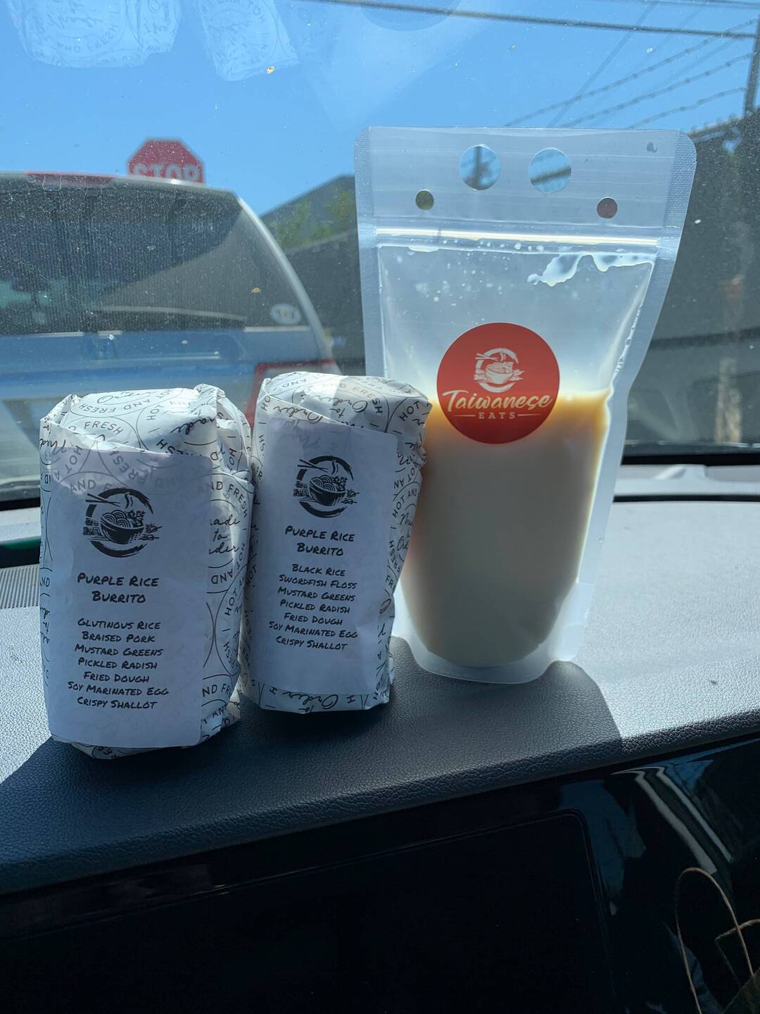 Purple rice fantuan with swordfish floss which does taste seafood-y