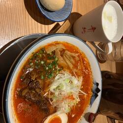 Spicy level 4 yuzu ramen with thick wheat noodles