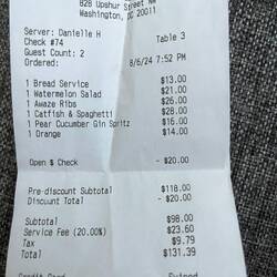 RestaurantsM LTunjukkan perjalananTambah ke senarai baldiKeluarkan dari senarai baldiKongsiHari 3,113Selasa, 6 Ogos 2024 7:46 PTG ☁️ 30 °C Altitud: 60 m Amerika SyarikatPetworth Playground38.941738, -77.02454438°56’30” N 77°1’28” WAlmeda 6 Ogos 2024, Amerika Syarikat ⋅ ☁️ 30 °C Bread service with carrot caramel sauce, lentil spread, and seedsWatermelon cucumber salad with crab Ribs with sweet berbere sauce with tomatoes and lettuceCatfish and spaghetti with Louisiana hot sauce - fish was dishy. The ribs and bread were bestBaca lagiLihat terjemahan0 suka Tunjukkan perjalanan
