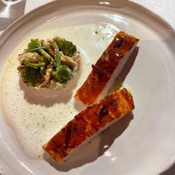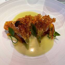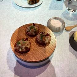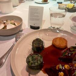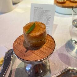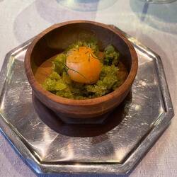 Jerusalem Artichoke with catfish liver cream tart and some chopped fruit