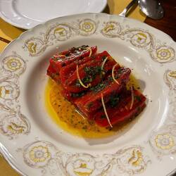 Tomatoes had lemon and parsley with a red wine vinaigrette possibly