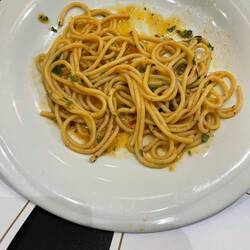 Spaghetti olive oil garlic chili. Good technique but not a lot of garlic flavor