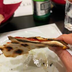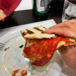 Pizza - spicy salami. Very thin crust