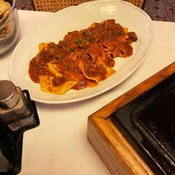 Wild boar pappardelle. Meat was dry and pasta was homemade but al dente