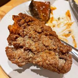Fried chicken dark meat was moist and needed the pepper honey hot sauce for flavor