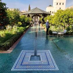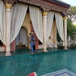 Nach unserem Rundgang gönnten wir uns noch einen Kaffee im Garten, bevor wir uns auf den Rückweg machten. Die zweieinhalb Kilometer liefen wir zu Fuß zurück durch das leicht chaotische Marrakesch. Es war laut, überall Mopeds, und der Benzingeruch erinnerte ein wenig an DDR-Zeiten. Trotzdem hatte auch dieser Spaziergang seinen ganz eigenen Charme und zeigte uns eine sehr authentische Seite der Stadt.