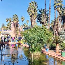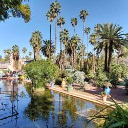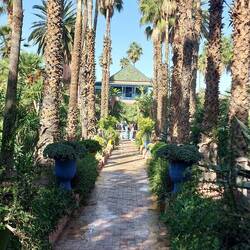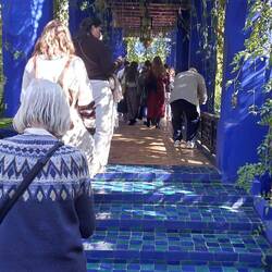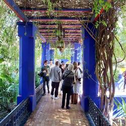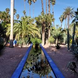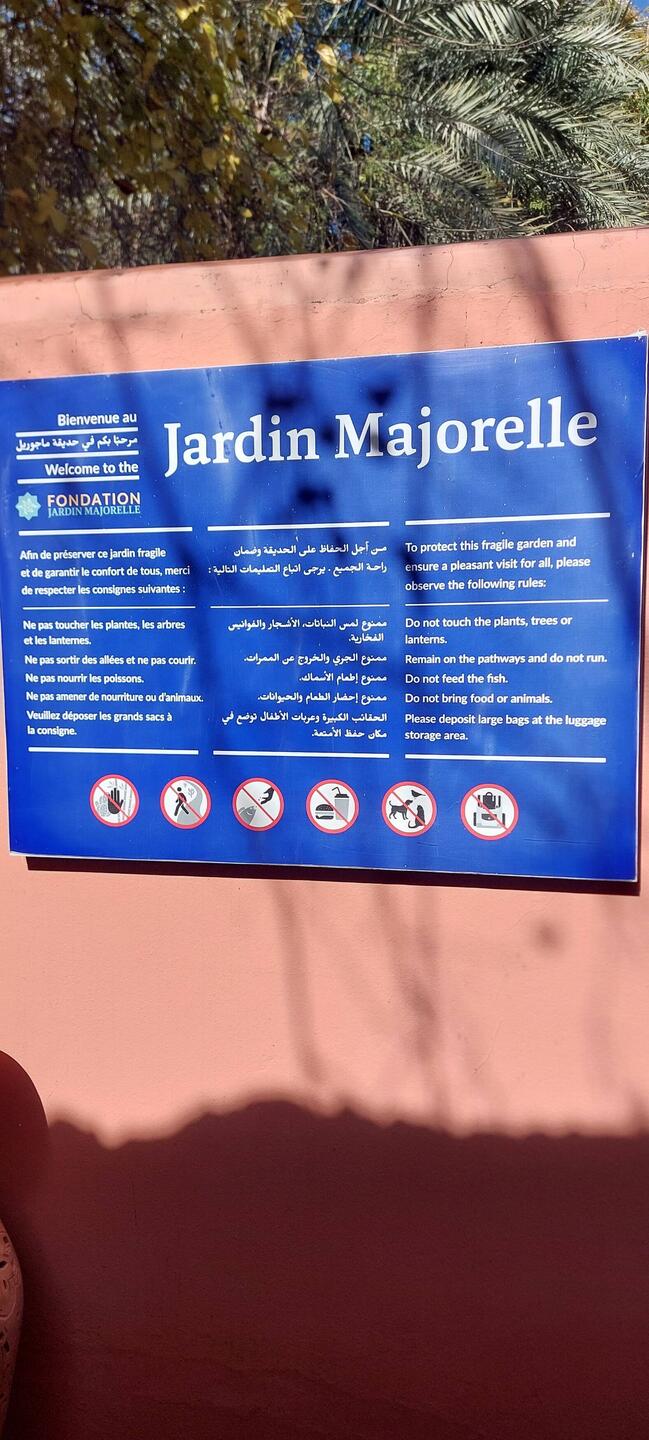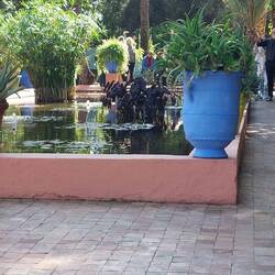 Anschließend kümmerten wir uns um die Planung des restlichen Tages und buchten online Tickets für den Besuch des Majorelle-Gartens. Mit dem Taxi ließen wir uns dorthin bringen und hatten nach der Ankunft noch etwa eine Stunde Zeit, um uns alles in Ruhe anzuschauen. Zwei lange Warteschlangen erwarteten uns, geordnet nach Zeitfenstern. Unser Einlass war eigentlich für 13 Uhr vorgesehen, doch wir hatten Glück und durften bereits eine Viertelstunde früher hinein.