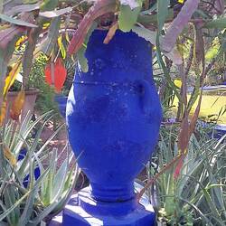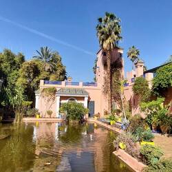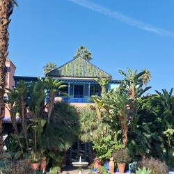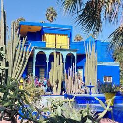 Der Majorelle-Garten war wunderschön angelegt. Überall leuchteten kräftige Farben – vor allem das berühmte Majorelle-Blau, das in Kombination mit dem satten Grün der Pflanzen besonders beeindruckend wirkte. Die harmonische Verbindung von Natur und Farbe machte den Garten zu einem ganz besonderen Ort. Wir machten viele schöne Fotos und genossen die ruhige Atmosphäre fernab des Großstadttrubels.