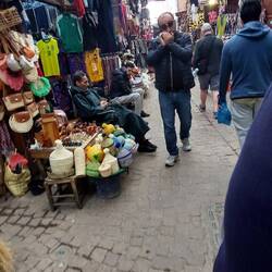Kurz nach zwei machten wir uns dann auf den Weg zu unserer letzten Tour: einer Souktour. Wir waren zu viert, gemeinsam mit einem englischen Paar, und unser Guide war derselbe, den wir bereits letzte Woche Donnerstag bei der historischen Tour hatten. Zu fünft fuhren wir in die Medina, stiegen aus und tauchten sofort wieder ein in das bunte, lebhafte Treiben der Stadt.