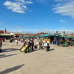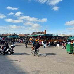 Zum Abschluss ging es zurück zum großen Platz, dem Jemaa el Fna. Dort herrschte wie immer ein unglaublich lebhaftes und intensives Treiben: Berberaffen, Schlangenbeschwörer, Hennafrauen, Musik, Stimmengewirr – Marrakesch in seiner ganzen, überwältigenden Vielfalt.