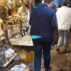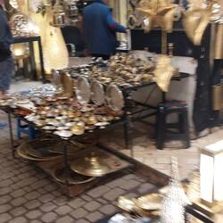 Etwa auf halber Strecke landeten wir wieder in dem Laden, den wir schon von letzter Woche kannten, wo uns Öle und Gewürze angeboten wurden. Wir blieben diesmal draußen. Anschließend besuchten wir einen Berbershop, eine Kooperative, die sich in einem Hinterhaus in einer sehr schmalen Gasse befand. Ehrlich gesagt hatten wir kurz ein mulmiges Gefühl – wir dachten, hier kann doch unmöglich etwas sein. Doch dann öffnete sich das Haus und offenbarte mehrere Räume voller Keramik, Lederwaren, Lampen und vieler weiterer Handwerkskunst. Wirklich beeindruckend.