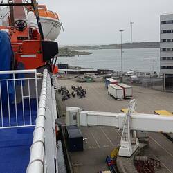 Warten bereits am Check in, der allerdings erst um 13.00 Uhr beginnt. Aber wie heißt es so schön "der frühe 🦅 fängt den Wurm. Unser Schiff ist gerade eingelaufen.