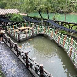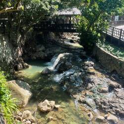 We travelled to Beitou thermal springs where we intended to go into the public baths ($3 each), however, were notified that our bathing attire was not suitable. Apparently males had to wear budgieLue lisää