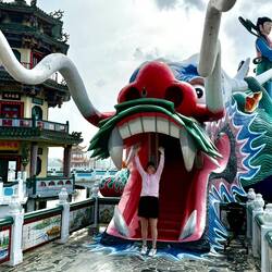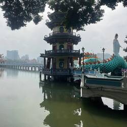 Travelled by local train to the city of Kaohsiung (bottom of Taiwan). It is the biggest port in Taiwan and a pleasant sea change from the concrete jungle we were last in. We took the ferry to CijinLue lisää