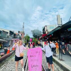 Had a ball at Pongxi, which is a small town separated by a train line that goes right through the middle of it. When you hear people blow whistles you are required to get off the track quick smart orLue lisää