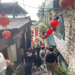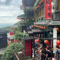Mountain town of Juifen. Great vistas, good bustle and apparently great shopping (Nelle managed to buy a handbag!). We enjoyed a drink on the balcony of the ‘secret’ Taiwanese restaurant whereLue lisää