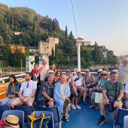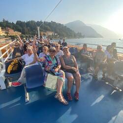 This morning the bus left the hotel at 8.00am and drove us the 60 minutes to Bellano, a town on the eastern side of Lake Como, from which we caught a ferry to the famous and beautiful town of Bellagio, right at the geographical centre of lake Como. The town, like most in this area, is built on the shores of Lake Como, the surrounding hills of which plummet spectacularly from about 800m above the lake into the water. The mountains seem further back from the lake are up to 2500m above sea level. The lake is said to have been carved out by a glacier over many years.