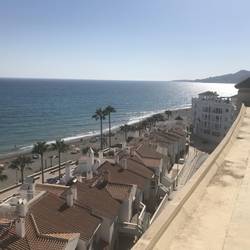 This morning we got our swimmers on and went straight downstairs to the beach. There was no time to be wasted. Beautiful warm sunshine and the Mediterranean was beckoning. We sat on the beach for about an hour, swam for a while in the clear water and skimmed stones across the sea. It wa a very memorable morning and we wished we were staying longer in the Costa del Sol. We had to check out at 12:00pm so that was the limit of the time we had.