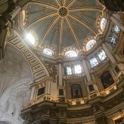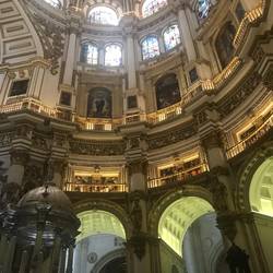 The Granada Cathedral could not be constructed until the Christians had regained control of Granada in 1492. The foundations were laid in 1518 on the site where the mosque had stood. The Cathedral was one of the first to be built in the renaissance style whereas most of the Cathedrals that predated this one were built in the Gothic architecture of the Middle Ages. This Cathedral was therefore cutting edge architecture. To stand in it is to feel that one is standing in a Greco Roman temple of massive scale due to its classical influences which at the time were new and untried.