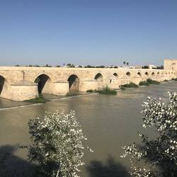 I took the opportunity tonight of wandering around the amazing city of Cordoba. I came across a triumphal arch and forum from the Roman times. Also there is a bridge from Roman times across the river which was an important port from Roman times right through to the Middle Ages. The river silted up, and then the port was moved downstream to Seville in the fifteenth century and Seville took on the port status that Cordoba had previously enjoyed.