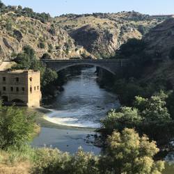 Toledo is entirely encircled by massive medieval and Roman walls, just like the old city of Jerusalem. It is a citadel of considerable size. It sits on a steep hill with a river bend sweeping around it much lower in the valley. The fortress would have been impregnable. The gates and towers can be climbed and the views are spectacular.