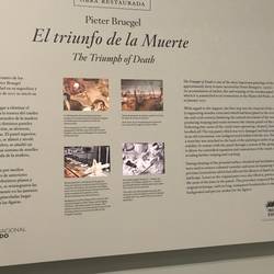 The Prado Museum takes its name from the "meadow" (Spanish "prado") which once existed in the area gave its name to the location in which the museum now stands. It is one of the pre-eminent art museums in the world. It's collection rivals the Louvre. There are some huge paintings in the collection, and many fine works by artists such as Goya, Rubens, El Greco, Titian, Valezquez, Rembrandt, Caravaggio, just to name a few. We spent four hours there and still did not see everything. It was an amazing place. The artworks are breath-taking. One could just look and the giant paintings by Rubens in the main arched hall for hours and still see new things in them. One of the paintings that captured my imagination was a 16th-century painting called The Triumph of Death by Pieter Brueghel the Elder. It depicts life as a battle between the forces of death and life, and that death is winning the war and everyone living is, or is soon to be, a prisoner and casualty of death, who is depicted as a scythe-wielding skeleton on a horse leading an army of skeletons swamping the army of the living. It is very graphic, almost cartoonish, and difficult to believe it was painted in 1562.