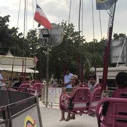 We met Sam and Jo Ryan, who had been up to the Arch de Triumph, and then we walked to Eglise de Madeleine, Place Vendome where the Ritz is located, to Angelina's coffee shop and then back to the Tuileries gardens to go on a ride at the Fair that is set up in those gardens. We went on a crazy roundabout which gave us a rotating view of the skyline of Paris. Then we enjoyed some churros and citrus gelati.