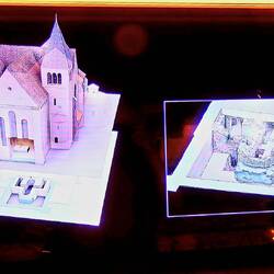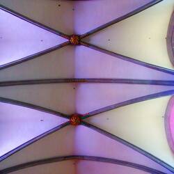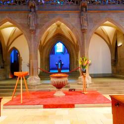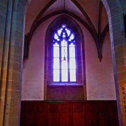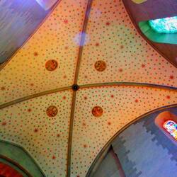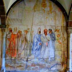 The choir of the abbey includes 5 large stained glass windows designed by artist Marc Chagall and installed in 1970. Each of the 5 has a dominant color and depicts a Biblical story. From leftLeggi altro