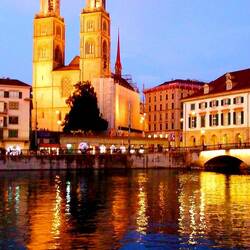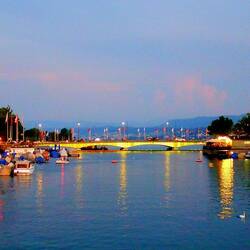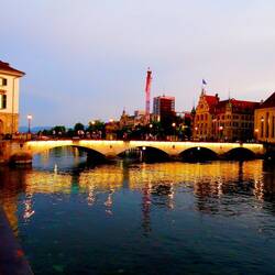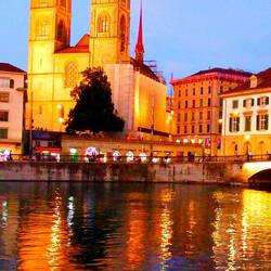 A leisurely stroll on Limattquai looking at the sights as the night lights begin to come on.