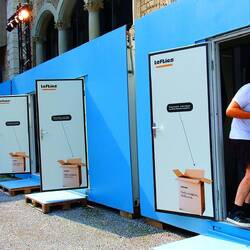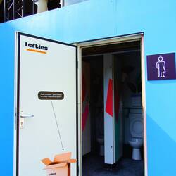 You can see the large tablet-type screens that attached to the exhibit case.