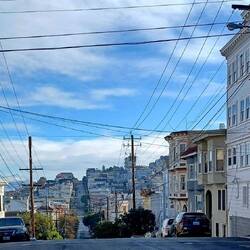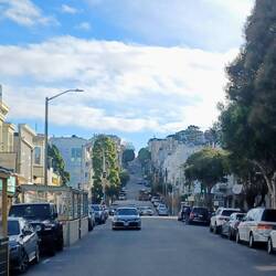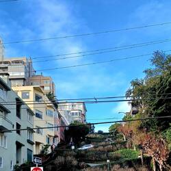 Actually- Lombard Street, famous for its one-block section between Hyde and Leavenworth Streets, known as the "crookedest street in the world," due to its eight hairpin turns on a steep hill.