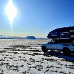 Podróżnik5./6. Oktober Laugarfell HotPot Nach unserer idylischen und ruhigen Nacht im Wald am See fuhren wir die acht Kilometer bis zum Hengifoss. Da HPF nicht fit war, wanderte ich alleine die 2 Km zum Hengifoss. Bei bewölktem Himmel. Die letzten 500 Meter konnte ich mir schenken, da der Foss nicht sichtbarer wurde als von der Brücke. Nach dem Kaffee und Tee ging es weiter. Von der 933 auf die 910 nach Südwesten, bei Schneefall fuhren wir über eine karge Hochebene. Das Ziel war Laugarfell, ein Guesthaus mit zwei Hotpots. Es schneite weiter als wir ankamen. Um 16:00 Uhr hüpften wir in den sehr warmen/ heissen (Ca.42 Grad) Pot. Kurz darauf kamen noch ein Camper aus der CH, die auch hier übernachteten und den Pot benützten. Nach einer Stunde ist es zu warm. Dann Nachtessen, es schneit immer noch. Nachts hatte es 3Grad. Freitag den 6. Oktober blieben wir noch stehen, da alles geschlossen war und somit gratis. Zum Glück hatten wir am Abend vorher noch die Gelegenheit, die Batterie zu laden. An diesem Tag gab es noch ein heisses Bad. So schön. Völlig alleine 😊
