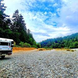 Im National Forest war es herrlich ruhig. Wir fuhren bis zur Gold Beach an der Oregon Coast. Dazwischen gab's Zmorge am Fluss.