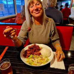 So halfen wir uns selber und bastelten eine Dusche mit dem Equipment, das wir dabei hatten. Dann zum Loundromat waschen. Mit 12$ weniger und einer Tasche sauberer Wäsche verliessen wir den Waschsaloon. Gleich Vis-a-vis erspäten wir ein Restaurant "New York Teriyaki. Kurz entschlossen gönnten wir uns ein Dinner. Auf der Speisekarte sahen wir dann, dass es ein Japanisches Restaurant war. Das Essen war echt lecker. Etwas weiter weg vom Restaurant stellten wir uns für die Nacht hin.Læs mere