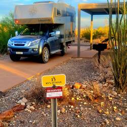 Den kenne ich, die haben dort Packrats, die lieben Schläuche und Kabel der Autos! Bei uns hatten die meisten RVs Lichtli ums/unter dem Fahrzeug, soll nutzen!